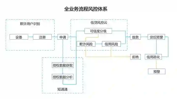 从设备启动、注册到信贷申请、再到贷后预警,数美采用多点、多级构成网络状布控,对贷款人信息进行鉴别。并将多维度、多模型的组合打法贯穿业务流程始终,做到风控与反欺诈的高召回、低误杀。