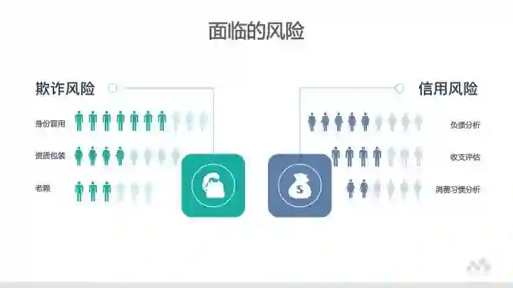普惠金融现在面临诸多风险,主要表现在欺诈类风险和信用违约风险,如伪冒申请、虚假包装、内部欺诈、信用风险等。国内有着大量的信用白户人群,由于各类信息壁垒导致跨平台负债信息无法面全获取,风险信息严重滞后。加之黑灰产业链产值逐年攀升,欺诈防不胜防。