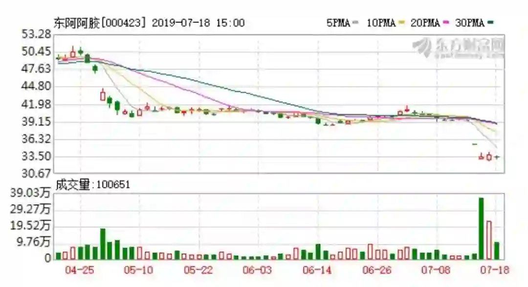 股价因此应声而落。一天后,东阿阿胶跌停,比对上一个交易日的情况,总市值缩水超过20亿。