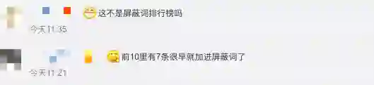 不过,很自然地,当同样的内容出现了太多次后,就会引起反感。不少用户吐槽表示,这个排行榜难道不是年度十大屏蔽词吗?