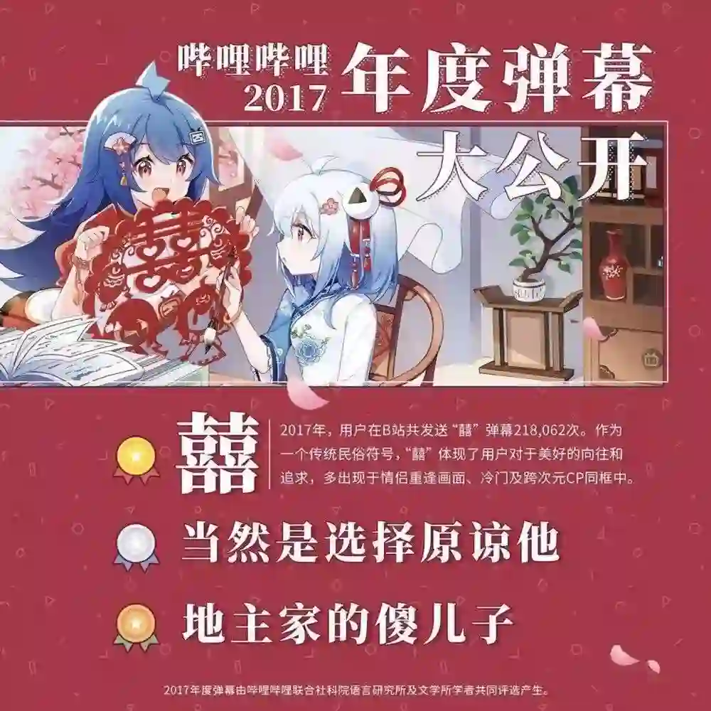 这是B站第二次披露“年度弹幕”。去年的弹幕前三名分别是“囍”“当然是选择原谅他”和“地主家的傻儿子”——今年都消失了,新上榜的热词包括“真实”“真香”等等。