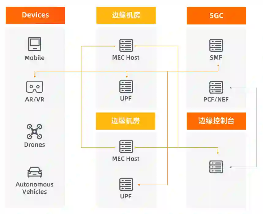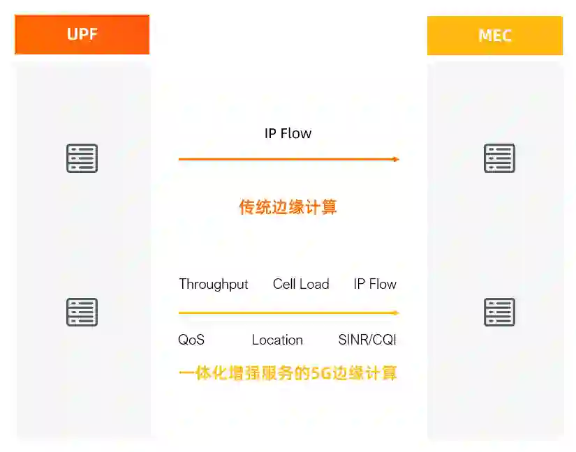 由于移动网络本身的架构特性,相对于传统的固网架构,移动网采用的是用户面流量和控制面管控两条腿走路的模式。边缘计算牵引的是用户面流量,但还可以通过与移动网交互从而获得更多控制面的信息,比如SINR,Cell Load等数据。这些控制面的数据可以给服务更多的能力组合,进一步增强边缘计算的对外服务能力,甚至能开拓出新的业务场景。
