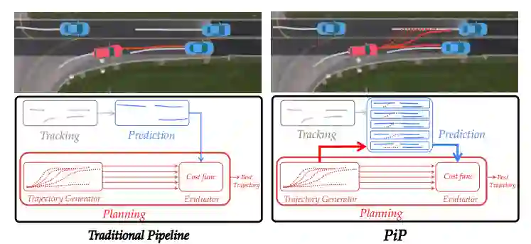 另外,通过将 PiP 训练到 ego vehicle(自主车辆)的多个候选轨迹上,实现了预测和规划耦合的新型 pipeline,