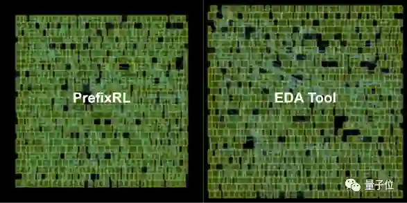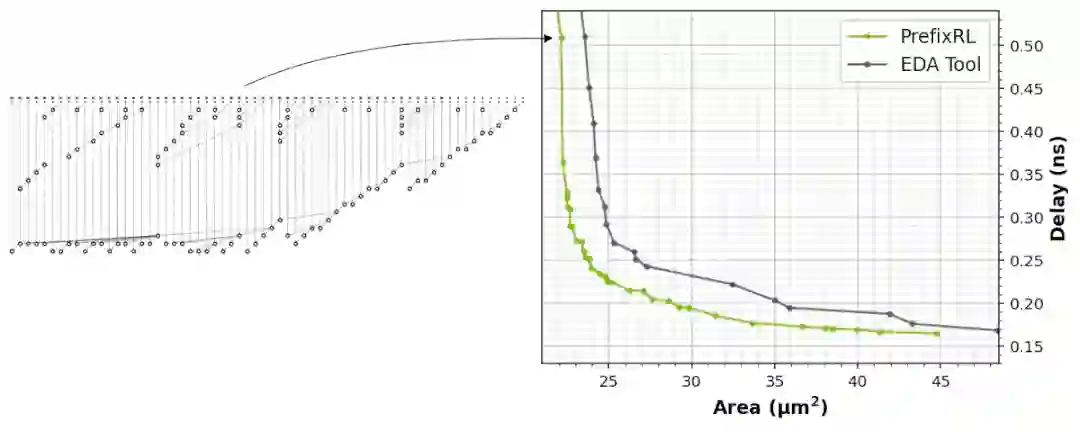 结果显示,在相同延迟、效能下PrefixRL加法器面积比EDA工具加法器面积减少了25%。