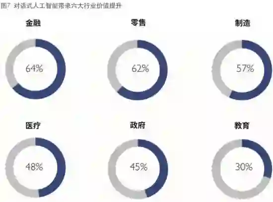 据IDC研究,预计在未来5年内,对话式人工智能在金融、零售、制造、医疗、政府和教育等六大行业至少会带来30%-64%的价值提升。