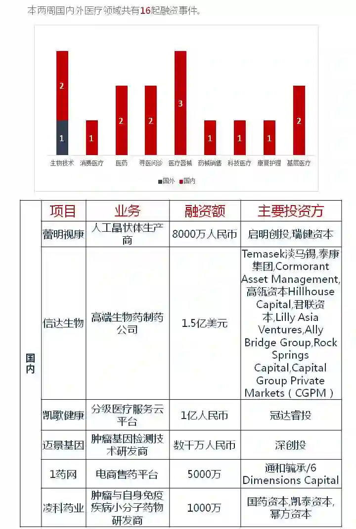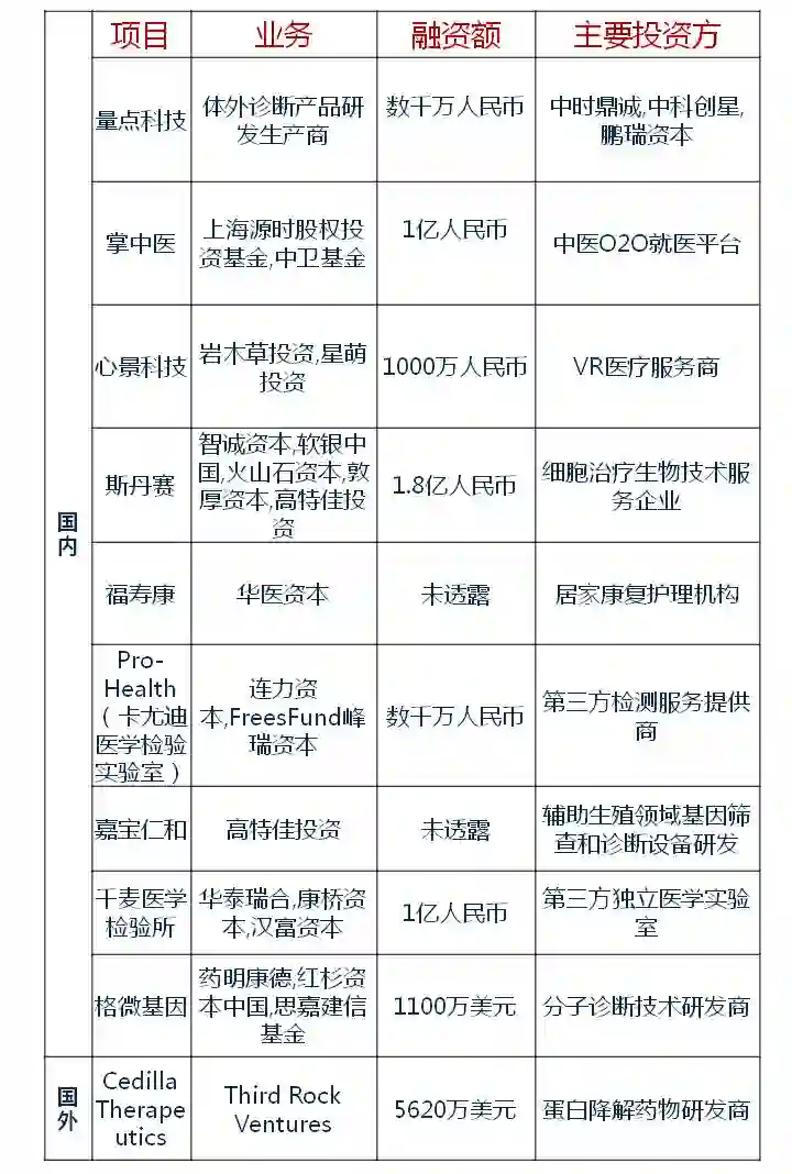 医健领域融资