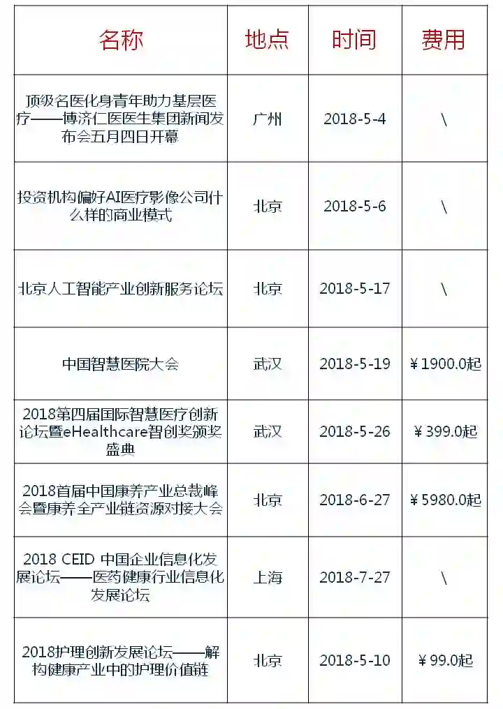 医健领域活动预告