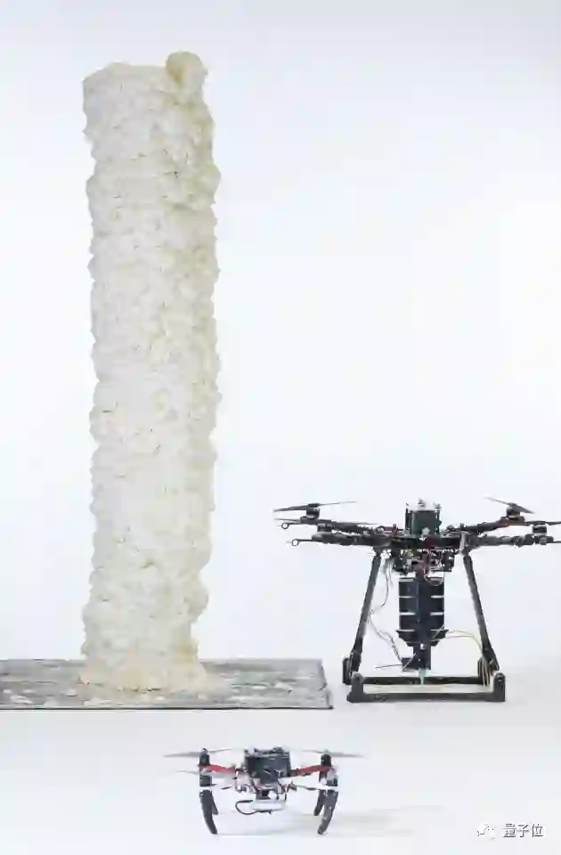 在快速定型绝缘泡沫材料的实验中,无人机打印2.05米高、共72层的圆筒型建筑原型只需29分钟,验证了此方法建造大型建筑的能力。