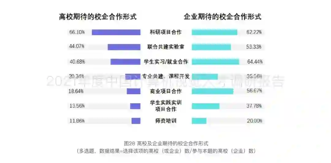 高校作为我国计算机视觉人才供应链中最为重要的人才培养和输出载体,其人才培养体系和方式对解决该领域人才供需不平衡的问题有着深远的意义和影响。根据本次调研对校企合作意愿的数据统计发现,高校对企业较为期待的专业共建、课程开发、实践实训项目和商业项目均表示出了较低的合作意向度。为此,本报告集中调研了来自国内多所院校的近80位人工智能专业教师,总结出原因并尝试为企业提供了一些可行性建议以推进校企合作模式的落地,解决高校的后顾之忧。