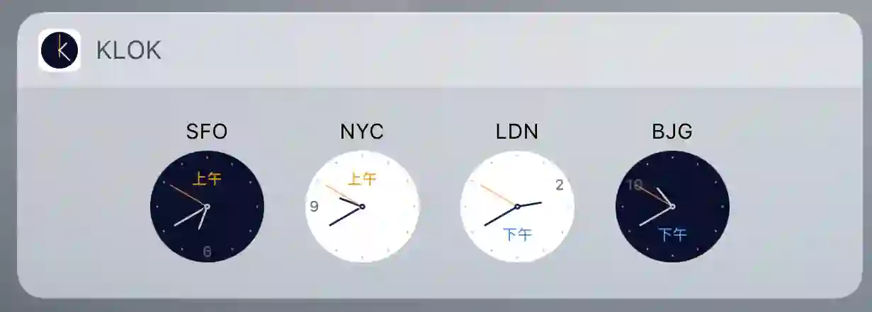 如果你常常出国出差、旅游,又或者说需要联系的人不在同一个时区,那么你决不应该错过 KLOK。作为一款世界时间转换器工具,它无需打开应用,在通知中心中浏览其小部件便可知晓 5 个城市的具体时间。