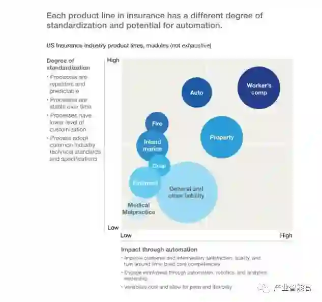 例如,保险业的每个产品线都具有不同程度的标准化和自动化潜力,需要进行检查和排序。看看销售,承保和定价,政策管理,理赔和财务以及账户等时间密集型流程,并在决定未来如何开展工作时从一张简单的表格开始。