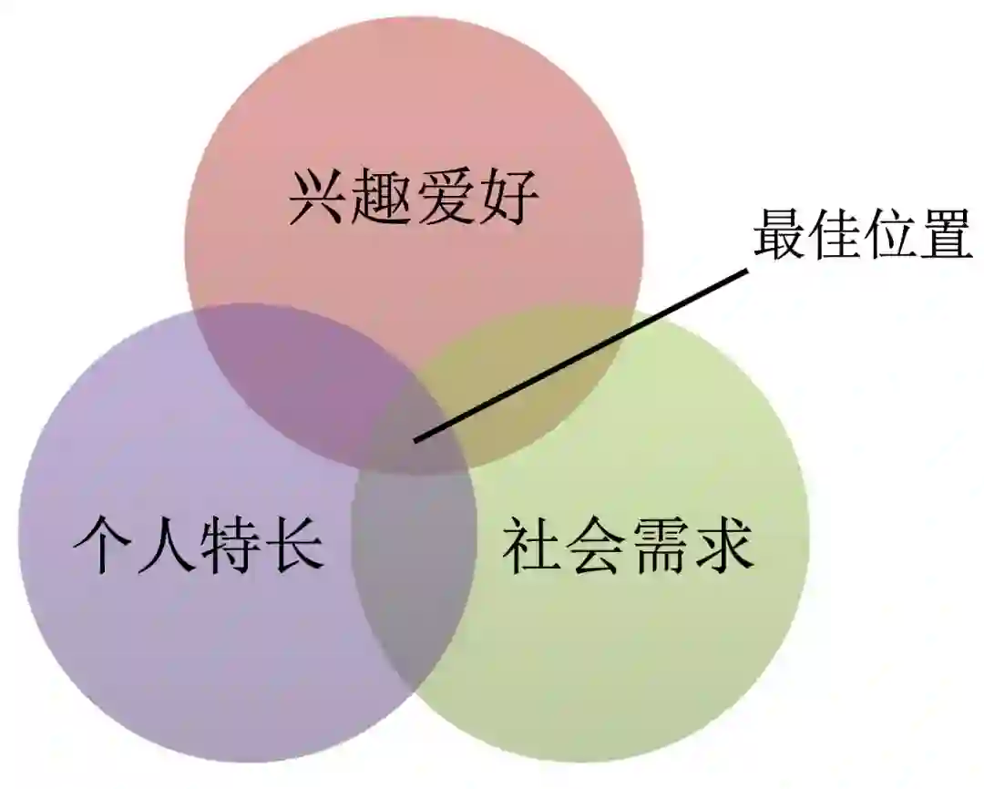 除了针对上述两个特点的相关建议外,还建议同学在科研训练中不忘初心,找到自己的研究兴趣。我认为,一个好的研究兴趣或科研选题,是三个因素的调和:兴趣爱好、个人特长、社会需求。个人的兴趣爱好,是自己擅长的,才有可能做得更好,这是能力基础;是社会需要的,才有可能得到及时的正反馈,这是外部基础。这个建议,对于专业方向、研究课题等选择都适用。
