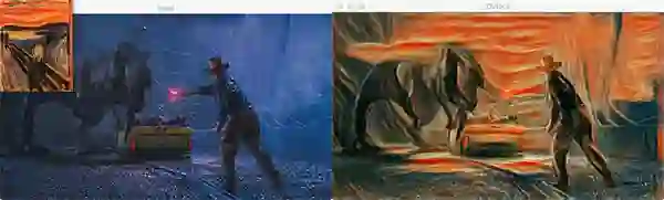 现在,对命令行参数做简单改变,然后用《侏罗纪公园》中的截图作为内容图像,进行风格迁移: