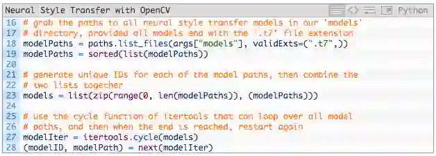 利用一个特殊的Python迭代器,它可以让我们在模型路径中循环使用所有可用的神经风格迁移模型。