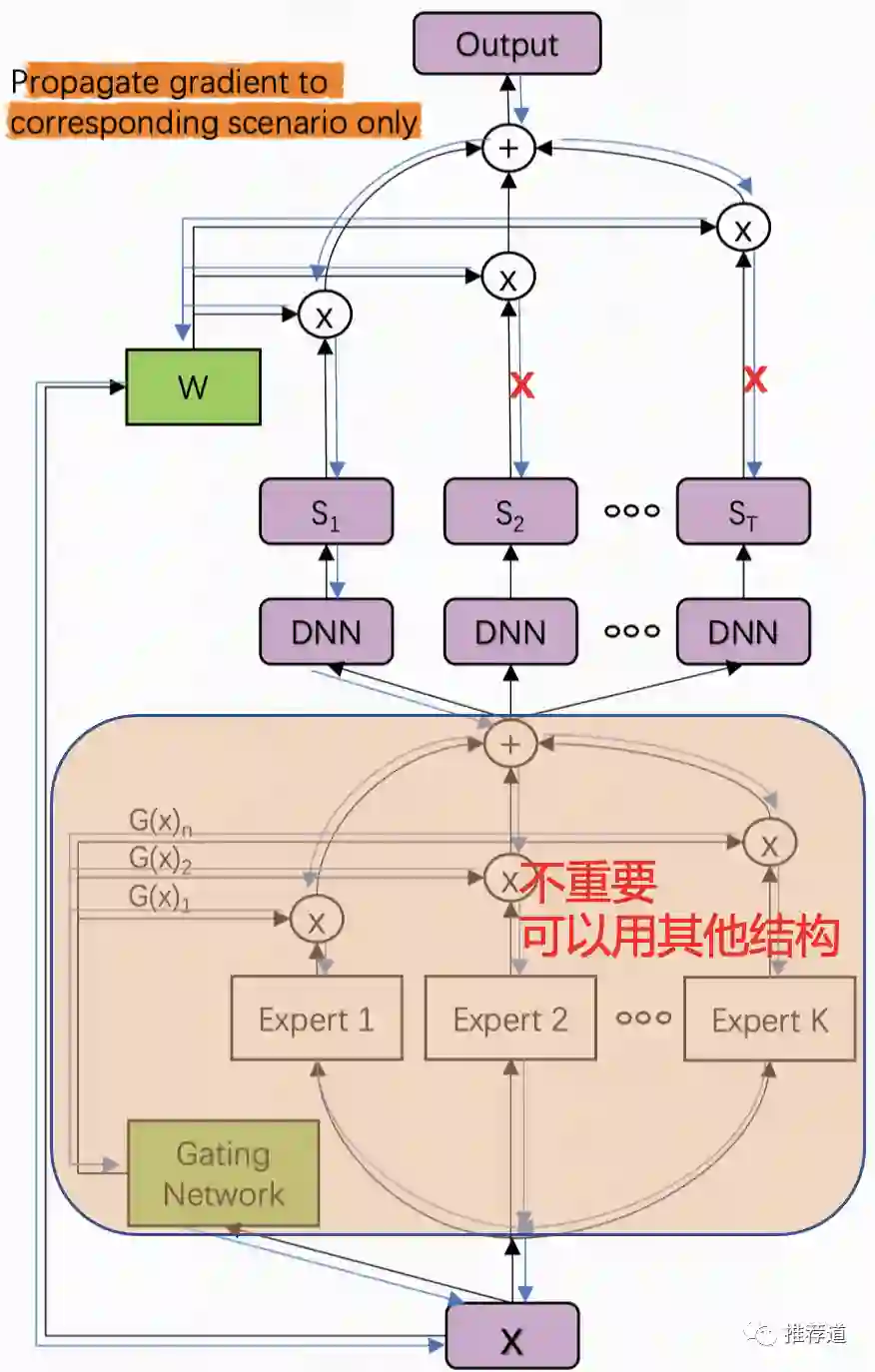 W是shared weight,所有domain的数据都要参与更新。