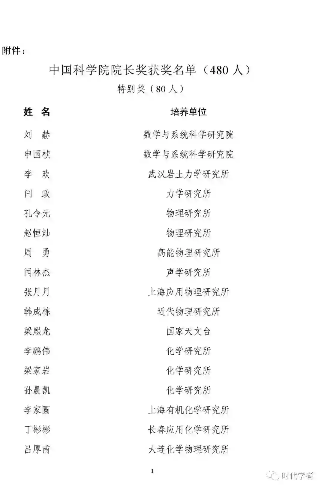 2020年度“中国科学院院长奖”评审工作已经结束。经评审,刘赫等80人获“中国科学院院长特别奖”,陈亮等400人获“中国科学院院长优秀奖”,现将评审结果予以公布。
