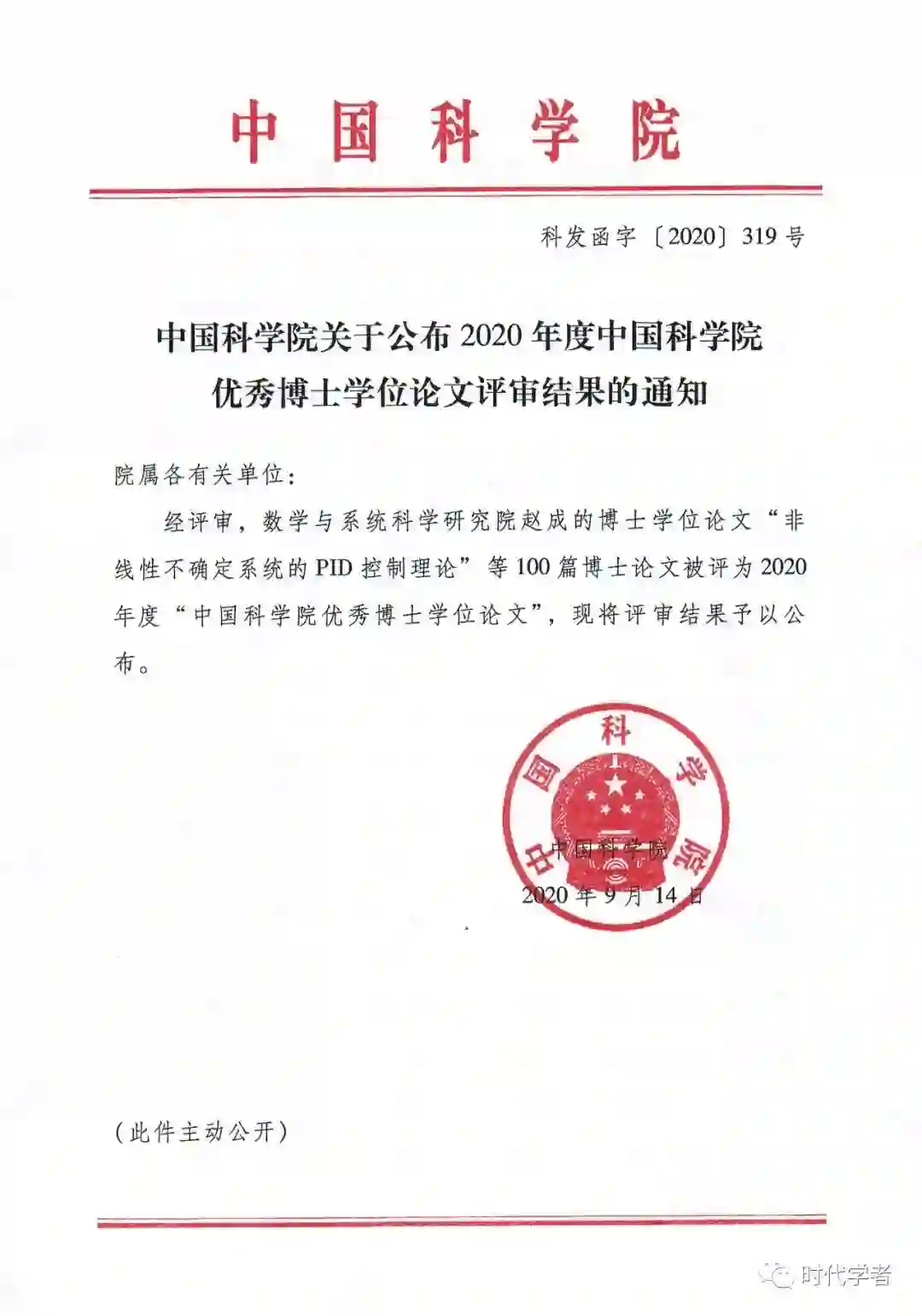 经评审,数学与系统科学研究院赵成的博士学位论文“非线性不确定系统的PID控制理论”等100篇博士论文被评为2020年度“中国科学院优秀博士学位论文”,现将评审结果予以公布。