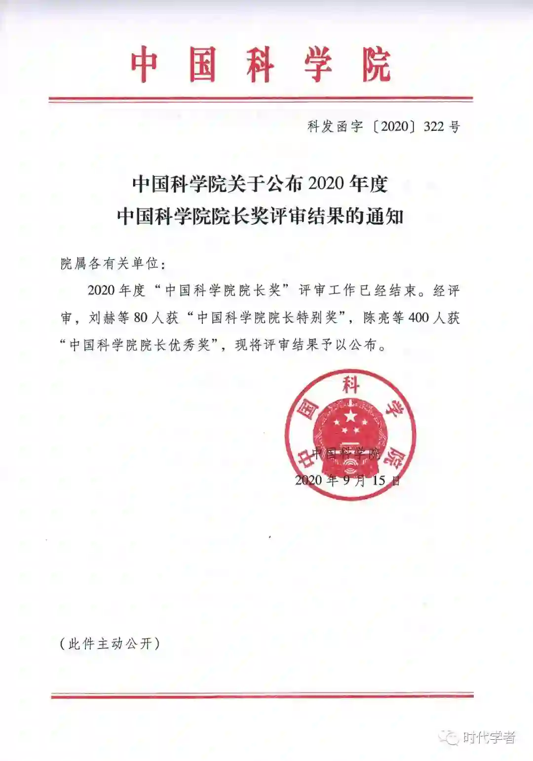中国科学院关于公布2020年度中国科学院院长奖评审结果的通知