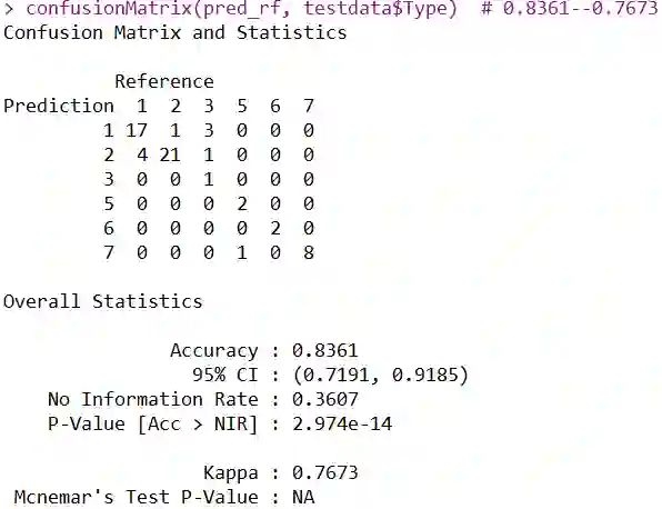 confusionMatrix(pred_rf, testdata$Type) # 0.8361--0.7673