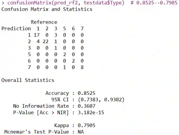 confusionMatrix(pred_rf2, testdata$Type) # 0.8525--0.7905
