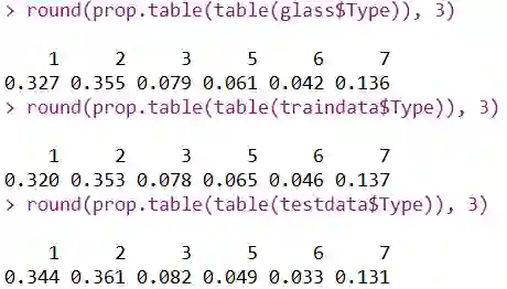 idx <- createDataPartition(glass$Type, p = 0.7, list = F)