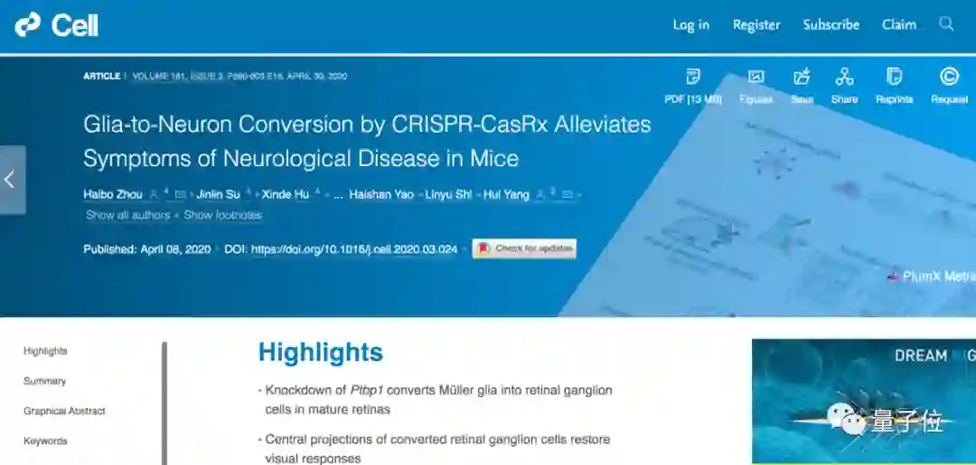 被举报者杨辉团队的论文,在更早的时间,4月8日,发了Cell。