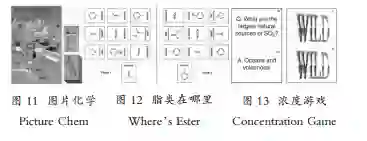 此类游戏在教学活动中运用的基本形式多为学生或师生合作,通过语言肢体等提示,让对方猜测卡片信息,能有效考察巩固学生对相应知识的掌握及发散思维。包括Where's Ester(脂类在哪里)[71](见图12)、Concentration Game(浓度游戏)[72](见图13)Elemental Periodica(元素周期)[73]、Chemistry Taboo(化学禁忌)[74]、The Name CGame(命名游戏)[75]等。其中,禁忌游戏在聚会常被使用,游戏中学生被分为4组,玩家轮流帮助队友猜测正确卡片包含的关键词,但不能说出卡片中包含的禁忌词汇,考察学生对卡片上词汇相关特点的熟悉程度。而The Nalme Game游戏派生自一个社会交往活动,每个团队由3-6个学生参与,教练在每个学生背后贴一张写有化学概念名字的卡片(如,元素、化合物、仪器、化学反应等),团队中成员看不到自己的名字但可看到其他人的名字。通过询问团队中其他成员是否问题,猜测自己背上的化学概念并写下来,直到每人都猜出自己被贴的名字。这些游戏规则简单,容易上手,可以有效调动学生的参与度。