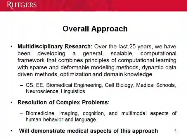 医疗数据分析对于新的医学发现、诊断改进和成本降低来说日益重要。本演讲将介绍一种已持续开发25年的通用可扩展的计算框架,它将计算学习、稀疏方法、混合范数、词典和稀疏性的原理与可变形建模方法结合在一起,应用于医学图像分析和计算机视觉领域中复杂的大规模问题中。