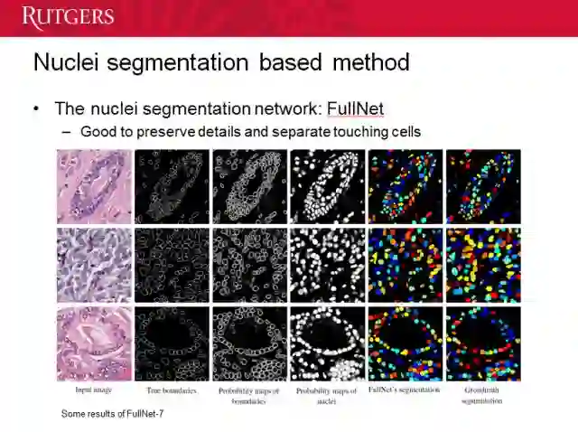 在临床前研究方面,我们也有一些进展。这是我们的一种细胞核的分割方法。这是我们和很多不同医院共同开展的一项研究。那么我们怎么找到细胞核呢?因为细胞核很重要,与 DNA 相关。