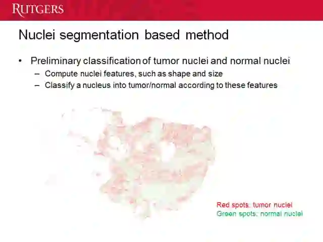 我们可以根据形状和大小等特征对细胞核进行分类,看是正常还是异常的。另外密度信息也很重要,肿瘤细胞和正常细胞有不同的密度。