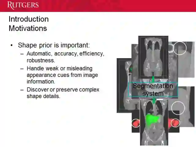 我们可以使用形状先验(shape prior)。我们的自动分割系统需要做到准确、有效和鲁棒。我们不能让医生等待太长时间,还要能处理图像中的伪影等错误信息,以及发现复杂的组织结构(比如大脑)中的细节。