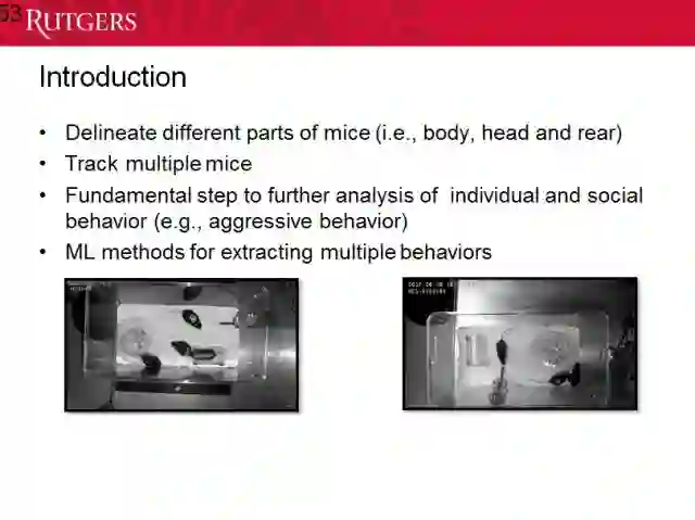 我们可以把它应用到一些临床前应用上,比如研究大量小鼠的行为。因为小鼠在药物和疾病研究上很重要,小鼠的行为能为我们提供一些结果。我们可以划分小鼠不同的部分,监控和统计多只小鼠的活动。