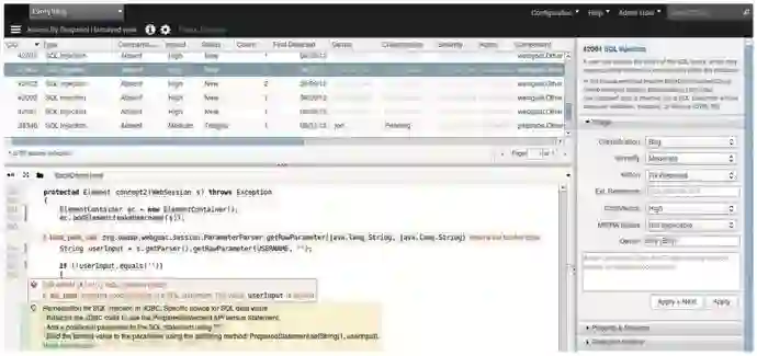 最后聊一聊 Gartner 提到的上述第一点,将解决方案植入到 SDLC 软件开发生命周期中,在开发的更早阶段就能处理安全问题。这其实是当代所有 AST 方案的一致努力方向,就像上面谈到的 Synopsys 静态分析一样。类似 Seeker 这样的 IAST 产品本身的着力点就是引入 SDLC 过程中。特别针对 web 应用的 Seeker 也是利用运行时代码和数据流关系,确认每个漏洞的可利用性和业务风险,并提供补救方案[17]。据说这款 IAST 工具可以提供所有修复漏洞的信息,包括风险的具体解释、技术细节、代码存在安全问题的位置和修改建议、基于上下文的修复建议、基于对数据风险和影响进行漏洞分级,甚至在应用中进行攻击的视频演示。而其重点仍然在于对 Agile 开发方式的支持,采用敏捷型解决方案来适应“最后一分钟”、频繁代码变化。