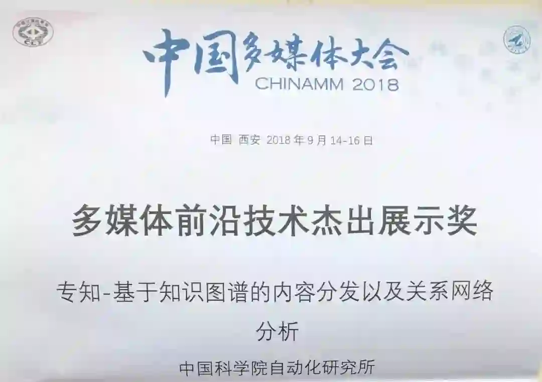 除了与图像和视频相关的研究,来自中科院自动化所的团队也带来了 www.zhuanzhi.ai 基于人工智能的知识分发平台,这一平台基于机器学习、知识图谱、多媒体语义分析等技术,聚焦提供人工智能领域的知识服务,在大会颁奖晚宴上,该平台获得多媒体前沿技术杰出展示奖。