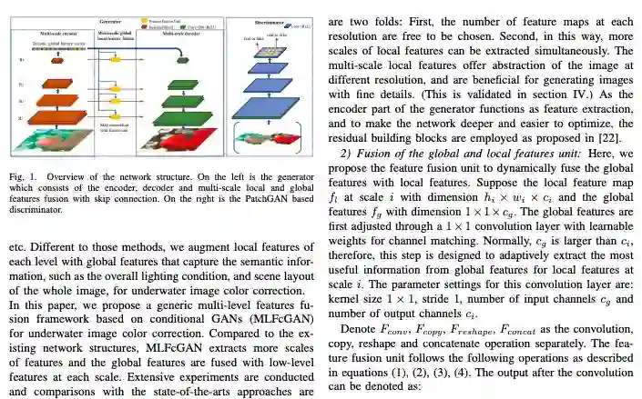 论文名称:MLFcGAN: Multi-level Feature Fusion based Conditional GAN for Underwater Image Color Correction