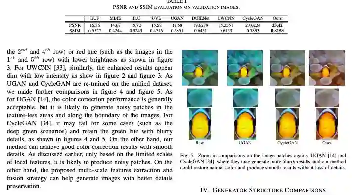 这篇论文基于生成对抗网络,提出了一个深度多尺度特征融合网络,首先抽取多尺度特征,然后在每个尺度用全局特征对局部特征进行了增强。在色彩修正和细节保留两个任务上,这篇论文所提方法取得领先优势,在质量、呈现效果、方法新颖上相比当前最佳模型更加优越。