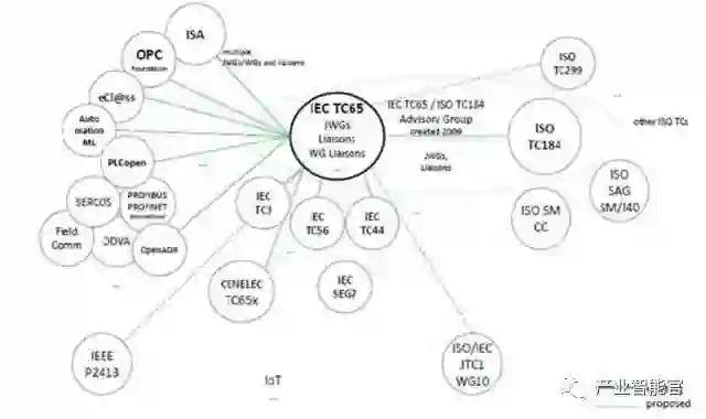 IEC/TC65主要负责工业测量、控制和自动化领域的国际标准化工作,现有4个分委会,涉及智能制造的工作组包括:TC65/WG10(工业信息安全)、WG16(数字工厂)、WG19(全生命周期管理)、AHG3(智能制造框架和系统架构)、JWG21(智能制造参考模型),SC65C/ WG16(工业无线),SC65E/JWG5(企业控制)、AHG1(智能制造信息模型)等。国内对口标委会为SAC/TC124,秘书处设在机械工业仪器仪表综合技术经济研究所。