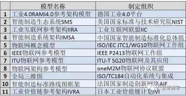 该工作组今年年初完成了智能制造相关的现有11种参考模型(见表1)的对比分析报告,本文根据该分析报告进行了进一步梳理、补充和分析总结。