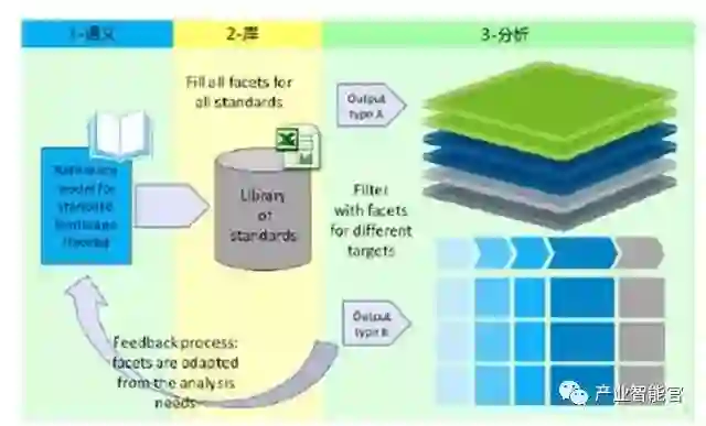 ☆ 框架介绍了一种分析过程:(步骤1)给出描述标准蓝图的信息模型。(步骤2) 将现有标准填入步骤1中的信息模型,形成标准库。(步骤3)根据需求过滤标准库,建立不同的图形表示,用于理解问题并做出决策。