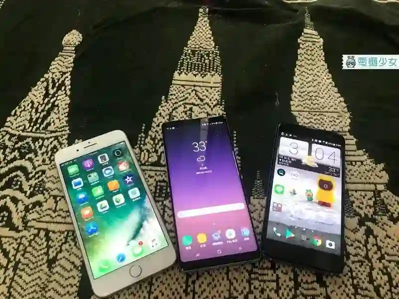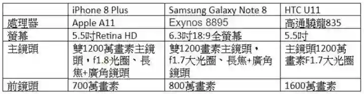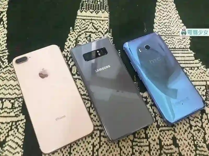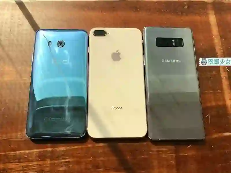 依序为 iPhone 8 Plus、Samsung Galaxy Note 8、HTC U11