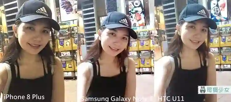 把百忙之中的宇恩拉来支援!!!iPhone 8 Plus 保持着什么都不动的风格,而 Note 8 是三张照片中最亮,妆感也被加重的一张,但略有点偏黄,U11 在白天人像中,对比度拉得比较高,照片看起来整体也偏暗一点。