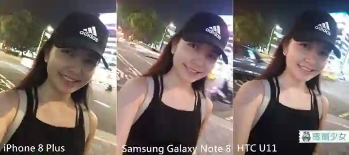 这个……虽然 U11 拥有 1600 万画素前镜头,但是在人像自拍部分,Note 8 的人脸光泽感最漂亮,至于 iPhone 8 Plus……我心已死。 (威!)那是何等的蜡黄与沧桑,即便内心已经衰老,外(照)表(片)也不能表现出来啊! Apple 究竟何时才能领悟内建美颜自拍的重要与方便性呢(望天)!
