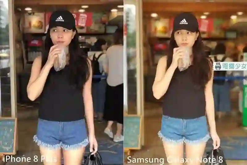 我们在操作时,发现 iPhone 8 Plus 的景深模式其实有一点难叫出来然后拍出来的景深效果也不是那么明显,至于 Note 8 在这一点上景深的效果比较明显,而且人像的整体色调上也比较好看,两者都会保存有景深+没有景深的照片,不过 iPhone 8 Plus 保留的无景深照片需要透过电脑才能看到,而 Note 8 可以直接在手机中就找到啰!!