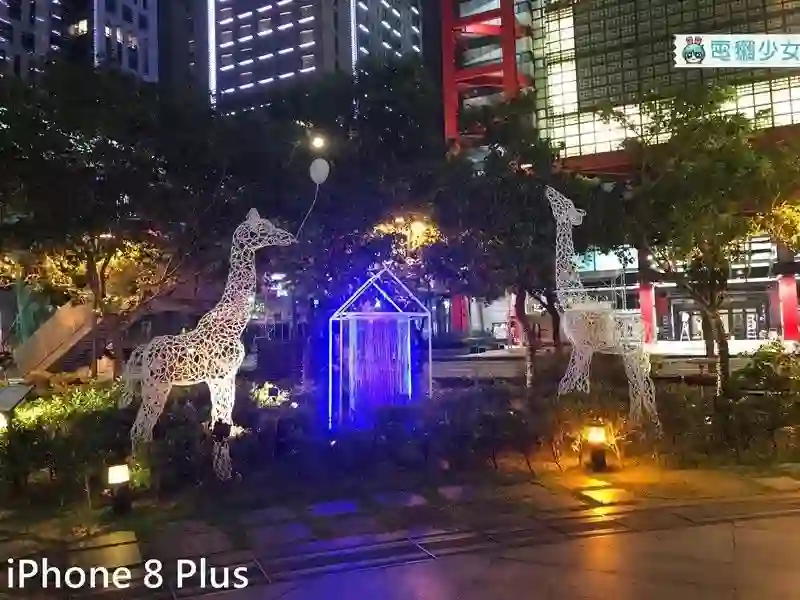 在有各种霓虹灯光照的情况下,三只手机的表现都很不错,比小细节的话,就是 iPhone 8 Plus 还是会有光晕变大的问题,而 Note 8 有一层光盖在画面上的感觉,U11 则是对比度拉高了。