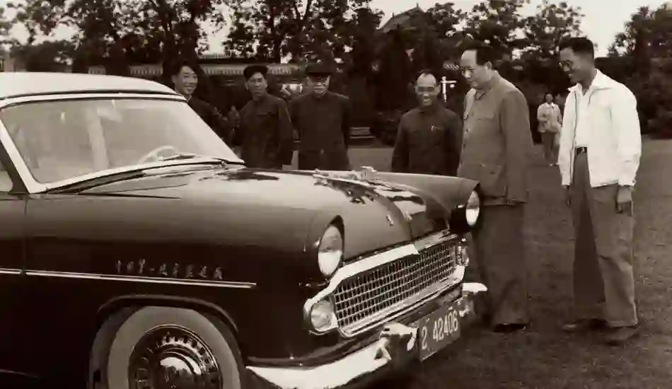 毛主席在中南海观看一汽试制的中国第一辆轿车“东风牌”