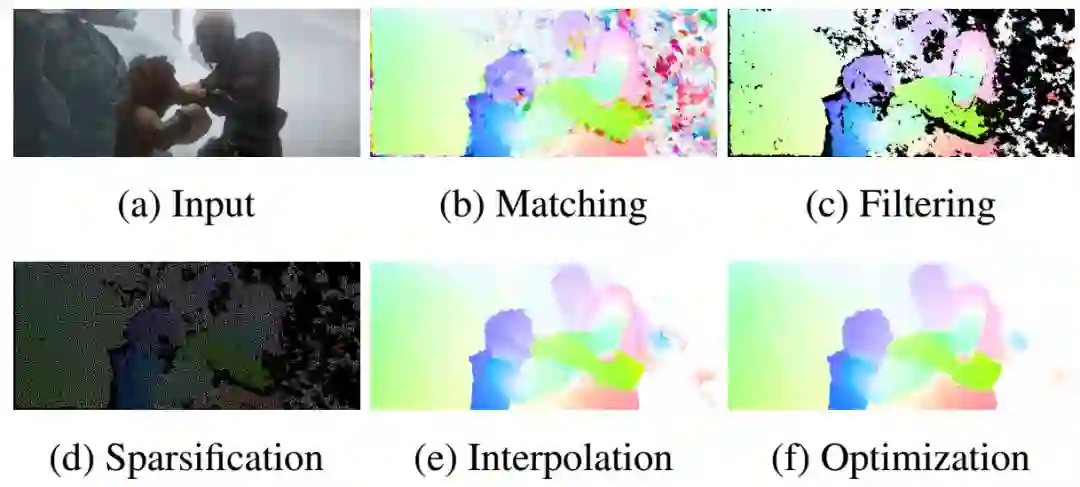 光流算法在许多应用中都有非常重要的作用。最近,Flow Field算法及其改进版本已经取得了优异的结果,在不同数据集上进行评估都取得了顶级的精度。在对算法的分析中,我们发现它能产生精确的稀疏匹配,但是在插值方面还有改进的余地。因此在本文中,我们将Flow Field算法的精确匹配与鲁棒插值相结合,提出了FlowFields++算法。此外,我们提出使用改进的变分优化作为后处理。在具有挑战性的KITTI和MPI Sintel数据集上进行评估表明,我们的算法与其他公开发表的结果相比,在两个基准数据集上均获得了顶级的结果。