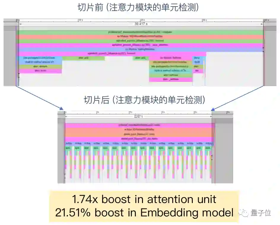 比如从下图我们就可以看到,注意力模块的效率在切片前后有着非常明显的差别。