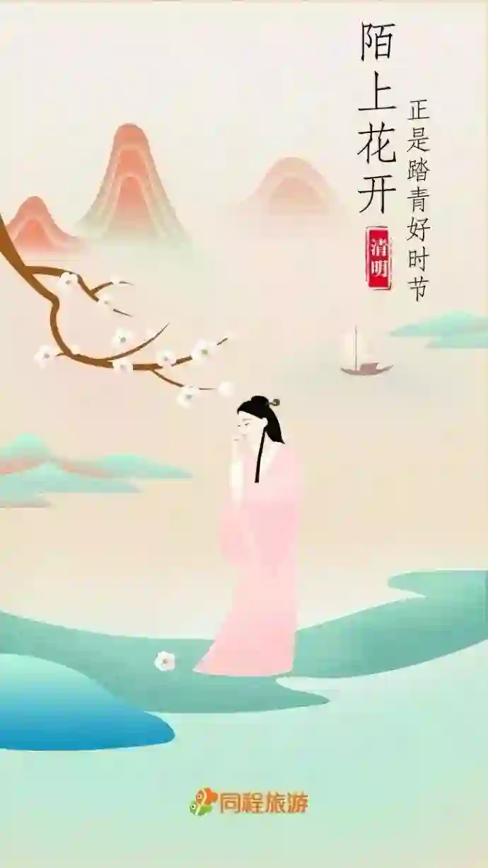 这就是普适性强的海报,所谓普适就普遍适合所有的品牌或主题。可口可乐/同程旅游这张清明节海报是普适主题,适合所有春季的主题。