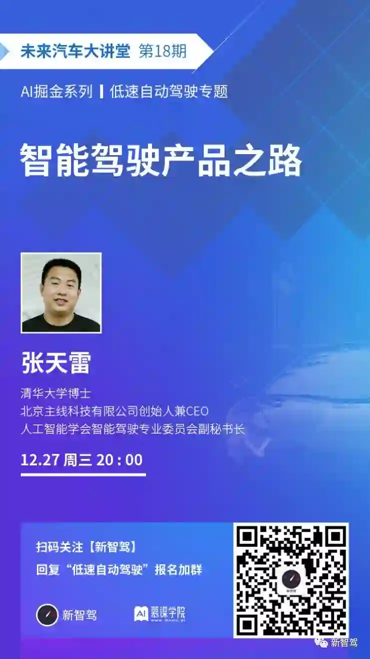 2、关注微信公众号“新智驾”(ID:AI-Drive),进入微信后台直接回复关键词“低速自动驾驶”,可预约课程;