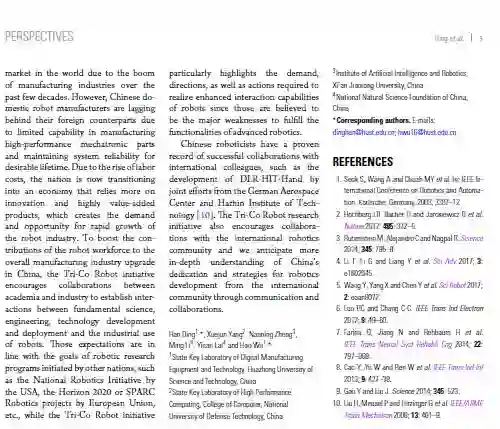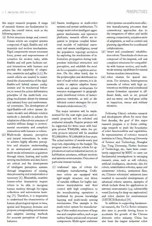 由华中科技大学丁汉院士,国防科技大学杨学军院士、西安交通大学郑南宁院士,国家自然科学基金委黎明研究员和赖一楠教授,以及华中科技大学吴豪研究员共同撰写的观点文章“Tri-Co Robot: A Chinese Robotic Research Initiative for Enhanced Robot Interaction Capabilities”最近发表于《国家科学评论》(National Science Review,2017,https://doi.org/10.1093/nsr/nwx148),介绍了“共融机器人基础理论与关键技术研究”重大研究计划。该计划旨在引导中国机器人领域学者深化相关领域的基础研究,同时推动中国机器人产业的发展。